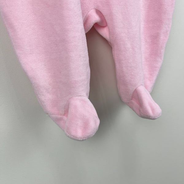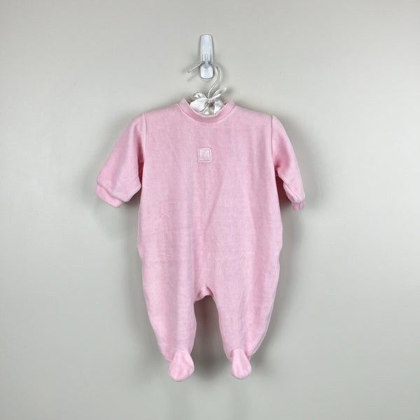 Jacadi Paris Pink Velour Footie. Baby girl size 3 months. Cozy one piece footed coverall outfit with snaps in the back. Great condition with no flaws noted!