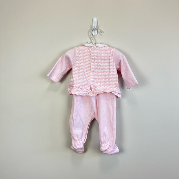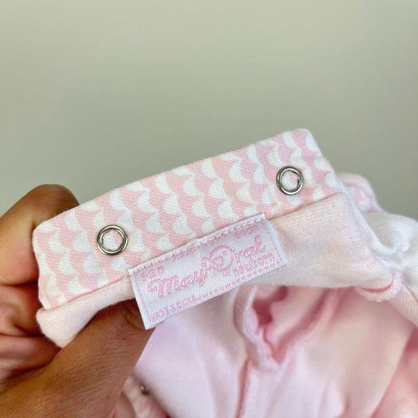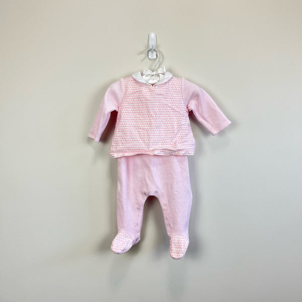 Mayoral Newborn One Piece Footie Outfit. Baby girl size 0-2 months. From popular Spanish children's designer known for high quality and adorable pieces. Collared pink and white coverall designed to look like separate top and bottom. Snaps along the legs and down the back allow for easy changes. So cute and cozy for every day wear! Excellent condition.
