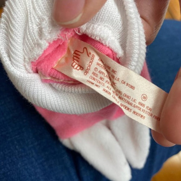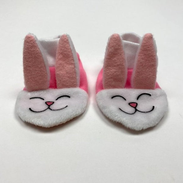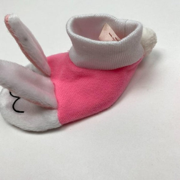 Vintage 90s Baby Girl Bunny Slippers. No size, so please check the measurement. Probably best for up to 9 months. White and bright pink with pom pom tails, tall ears, and happy faces. Tiny mark on back of one ear, but otherwise like new. Perfect for baby's first Easter!