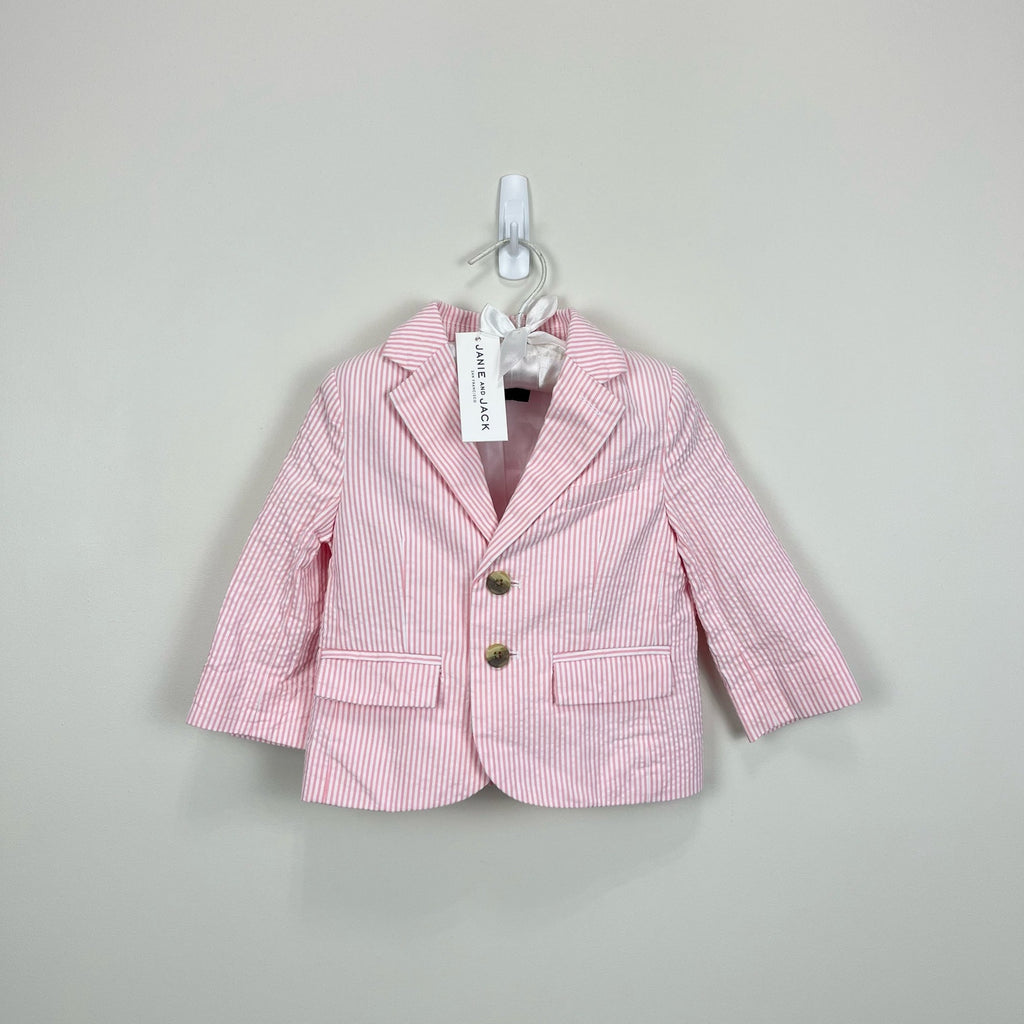 Janie and Jack Scarf Pink Stripe Seersucker Blazer 12-18 Months NWT