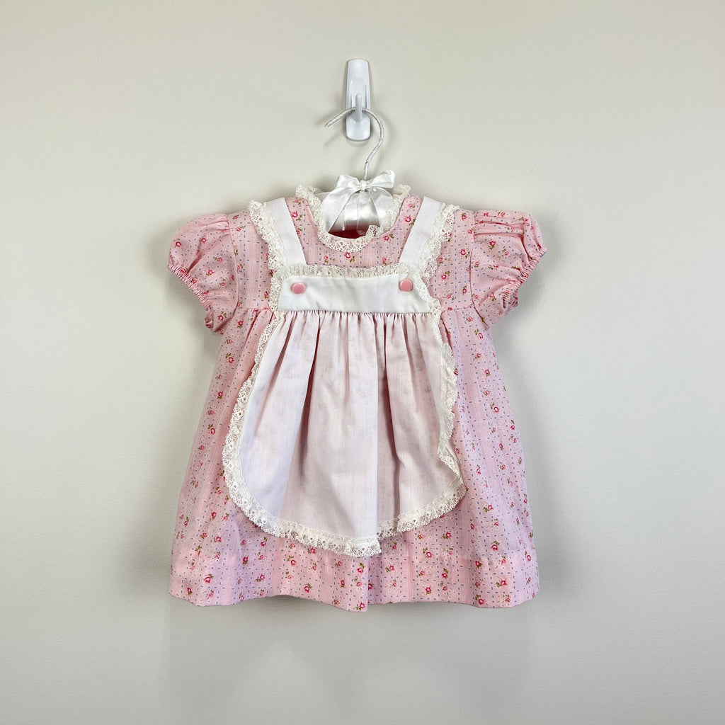 Vintage Girls Pink Floral Pinafore Dress 18 Months