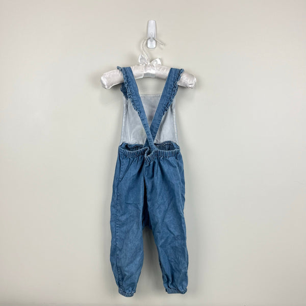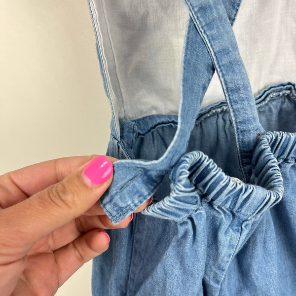 Mini Boden Chambray Ruffle Heart Dungarees 12-18 Months