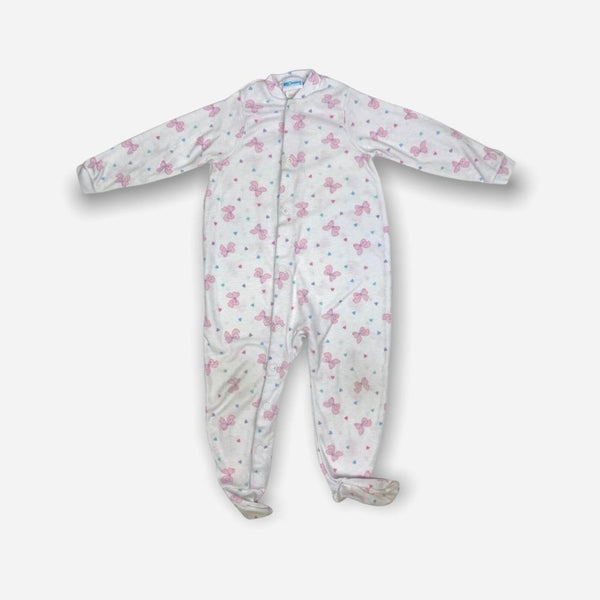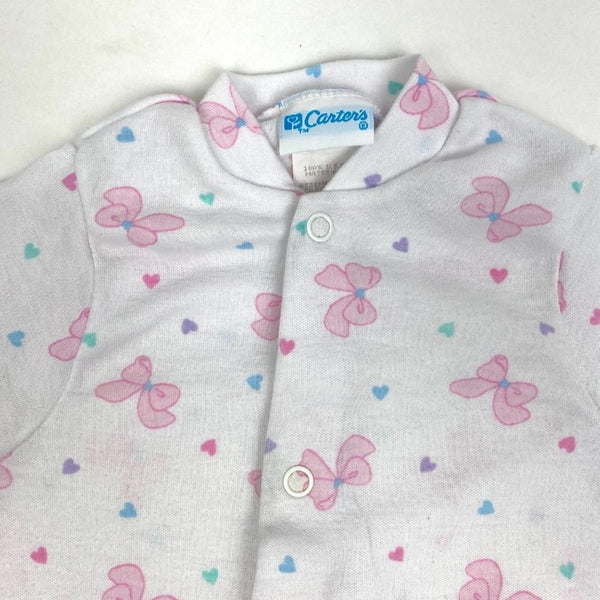 Vintage Carter's One Piece Bow Pajamas. Baby toddler girl size XL, which looks about 24 months, but please check measurements to ensure fit. One piece footed pajamas circa the 90s. White with colorful heart polka dots and pink bows. Typical wear to the fabric.