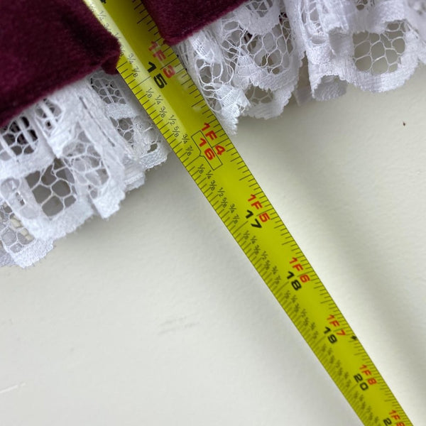 Vintage Youngland Raspberry Red Velvet Dress. Baby toddler girl size 18 months. Pretty purple/red shade of soft velvet. Decorative white bib collar and lace at the bottom. Has some untreated color bleed.
