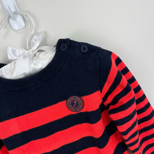 Jacadi Paris Striped Sweater. Baby toddler boy size 24 months. Baby toddler boy size 24 months. Cozy cotton blend pullover sweater in navy blue and bright red stripes. Buttons on the shoulder for easy on/off. Great condition!
