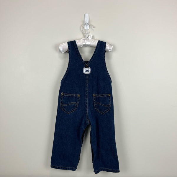 Vintage Lee Blue Jean Overalls. Unisex baby boy or girl size 24 months. USA made. Classic denim overalls with leather Lee patch on bib pocket and adjustable shoulder straps. Perfect for every day play!