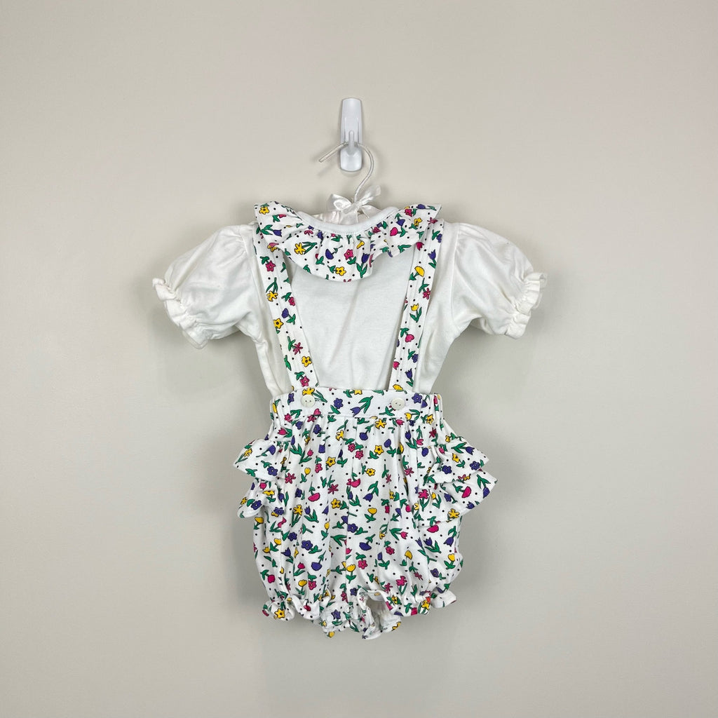 Vintage All Mine Floral Ruffle Shortall Romper Set 24 Months