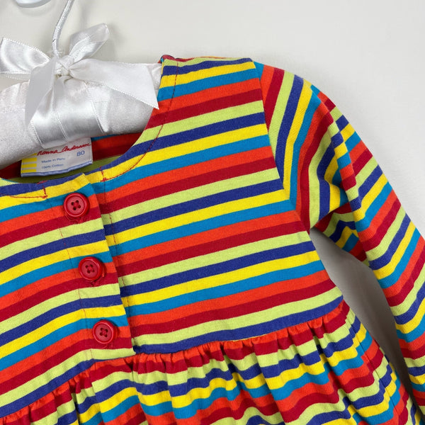 Hanna Andersson Long Sleeve Rainbow Striped Play Dress 80 cm 18-24 Months
