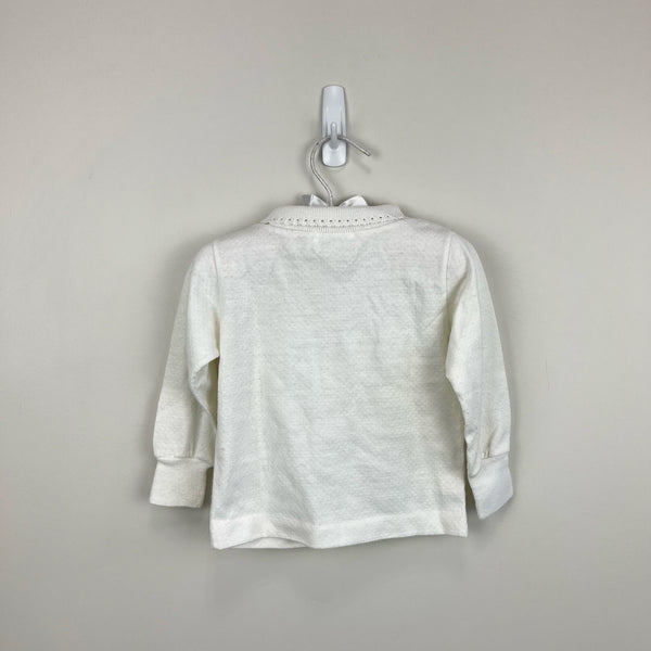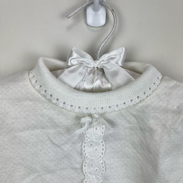 Vintage Health-tex Pointelle Eyelet Bow Turtleneck Top. Baby toddler girl size 24 months. USA made. Long sleeve white shirt with eyelet lace detail down the front and collar and a ribbon bow at the neck. So cute paired with overalls or jeans and a cardigan!