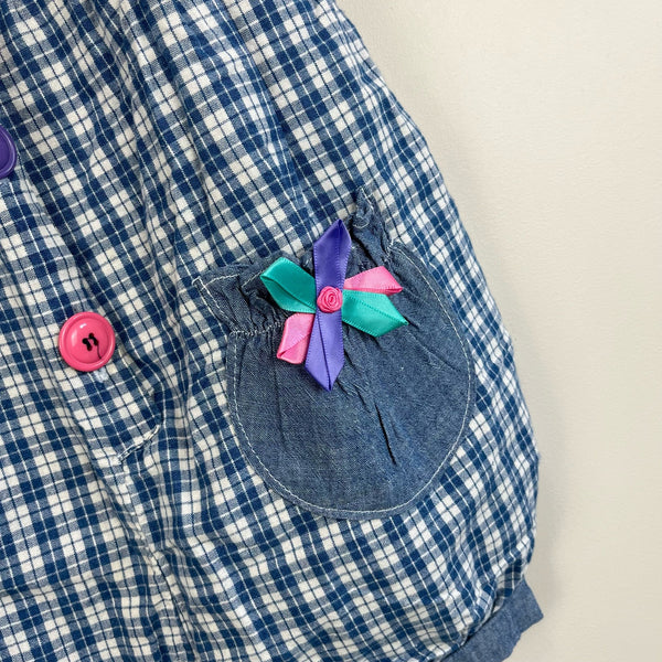 Vintage Bunny & Me Chambray Blue Plaid Romper. Toddler girl size 2T. Adorable sleeveless one piece bubble outfit for summer! Features oversized collar, colorful buttons, and ribbon on the pocket. Great condition!