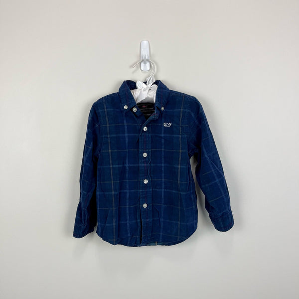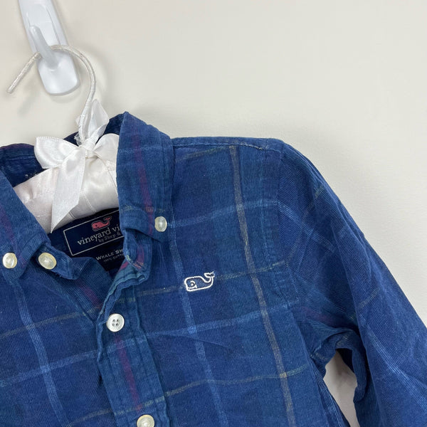 Vineyard Vines Boys Plaid Cord Whale Shirt. Toddler boy size 2T. Super soft, light weight corduroy button down shirt. Navy blue plaid pattern with signature whale logo on chest. Perfect for winter! Excellent condition.