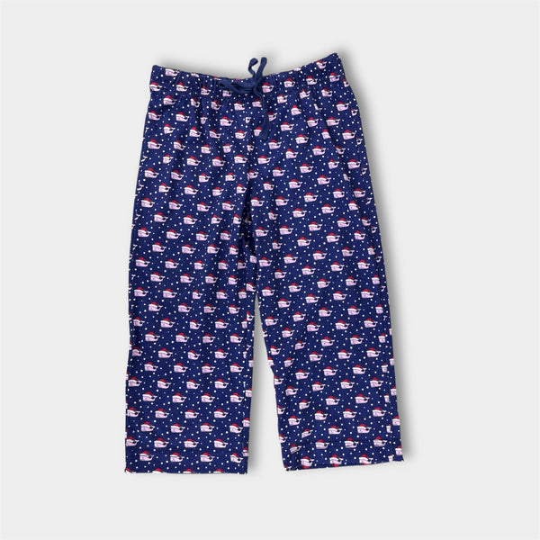 Vineyard Vines Knit Christmas Pajama Pants. Toddler boy size 2-3 years. Cozy pull on lounge pants. Navy blue with white polka dots (snow) and festive pink whales wearing Santa hats. Great condition with no flaws noted.