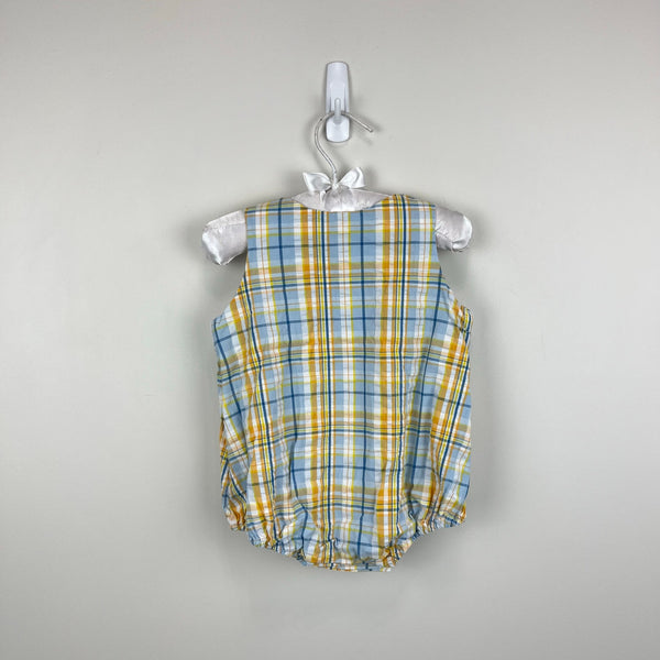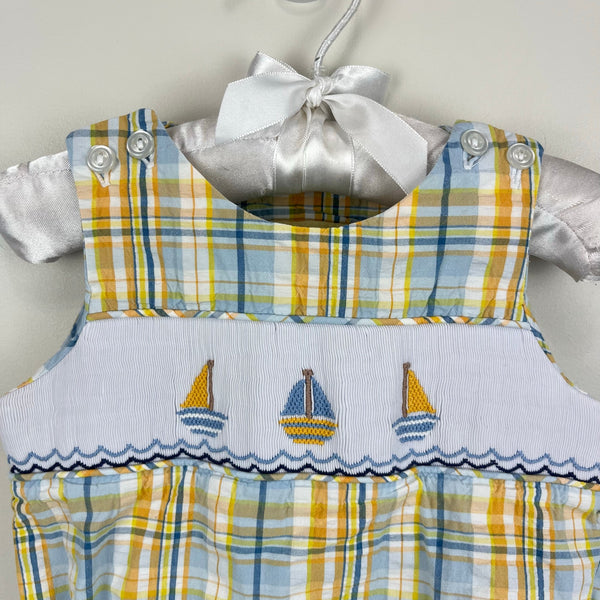 Le'ZaMe Smocked Plaid Sailboat Sunsuit Romper 6 Months