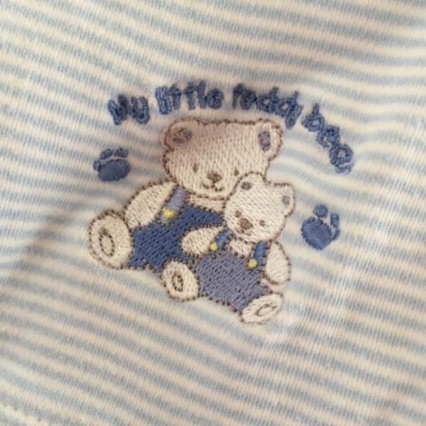 Baby Boy Blue & White Soft Overalls 3-6 Months. Super soft outfit by Little Impressions. Generous cut allows baby to comfortably wiggle and crawl in these. Looks cute with a white top underneath! Snaps along the legs make for easy diaper changes, and buttons at the chest allow for easy on/off!