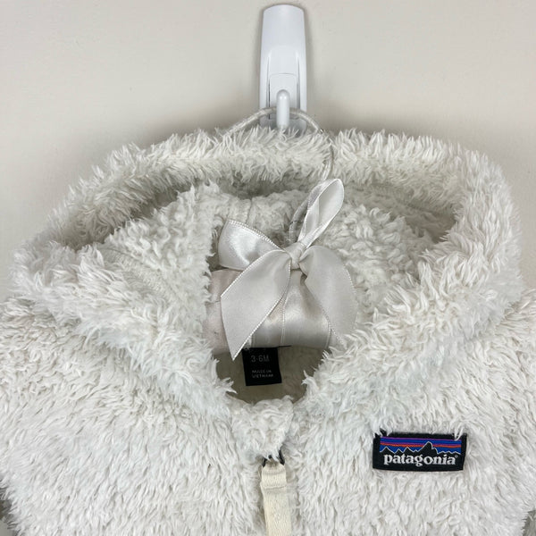 Patagonia Baby Furry Friends Fleece Hoody Birch White. Baby girl or boy size 3-6 months. Super soft and cozy plush fleece zip-up hooded jacket. Adorable teddy bear ears on the hood! Excellent condition.