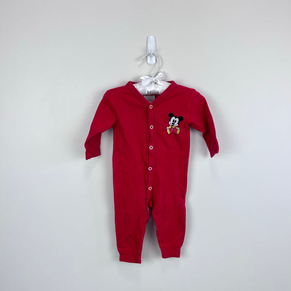 Vintage Baby Mickey & Co Red Coverall. Baby boy or girl size 6 months. Cute and cozy one piece outfit featuring Disney's baby Mickey Mouse on the chest. Snaps down the front. Light wear; no stains, tears, etc.