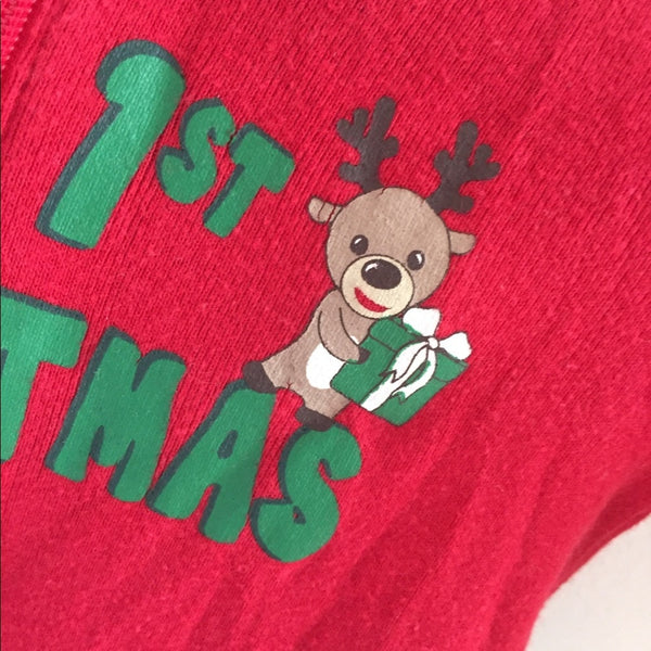 Children’s Place My 1st Christmas Sleep & Play. Unisex baby boy or girl size 3-6 months. Front says "My 1st Christmas" and has a reindeer holding a present and the bum has an adorable reindeer face!