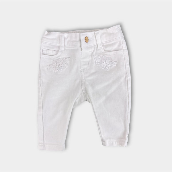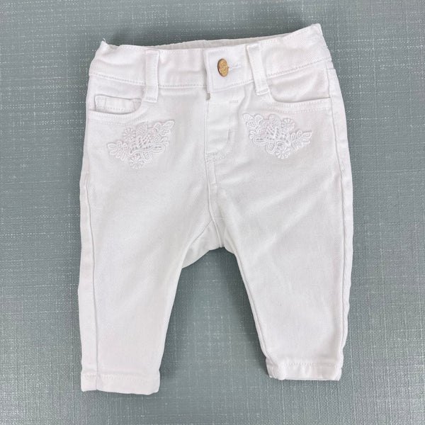 Janie and Jack White Flower Embroidered Jeans 3-6 Months