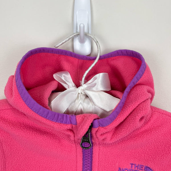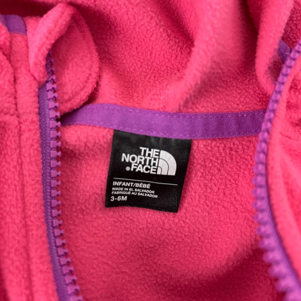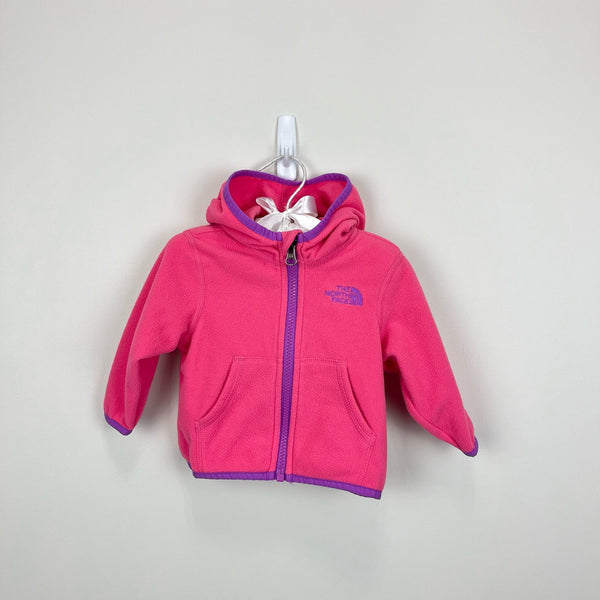 The North Face Girls Glacier Full Zip Hoodie. Baby girl size 3-6 months. Hooded, full zip fleece jacket. Bright pink with purple accents. Has pockets! Light-weight, but cozy, durable, pill-resistant fleece. Perfect extra layer for fall or spring. Excellent condition!