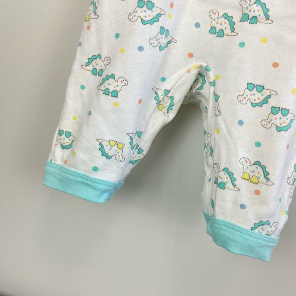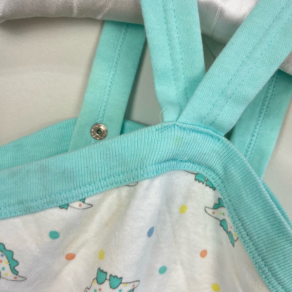 Vintage Carter's Soft Dino Overalls. Baby girl or boy size medium (12-18 lbs; looks about 3-6 months). USA made. Love this unique style! Soft and cozy white and aqua green overalls with colorful polka dot and dinosaur print. Great condition!