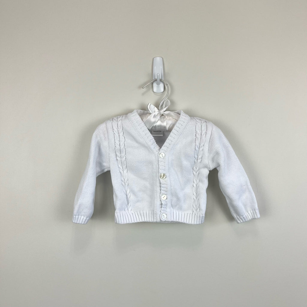 Sarah Louise White Cable Knit Cardigan 6 Months