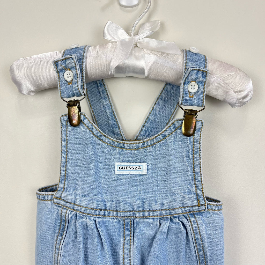 Vintage Guess Blue Jean Pleated Clip Overalls 6 Months USA