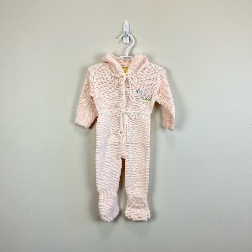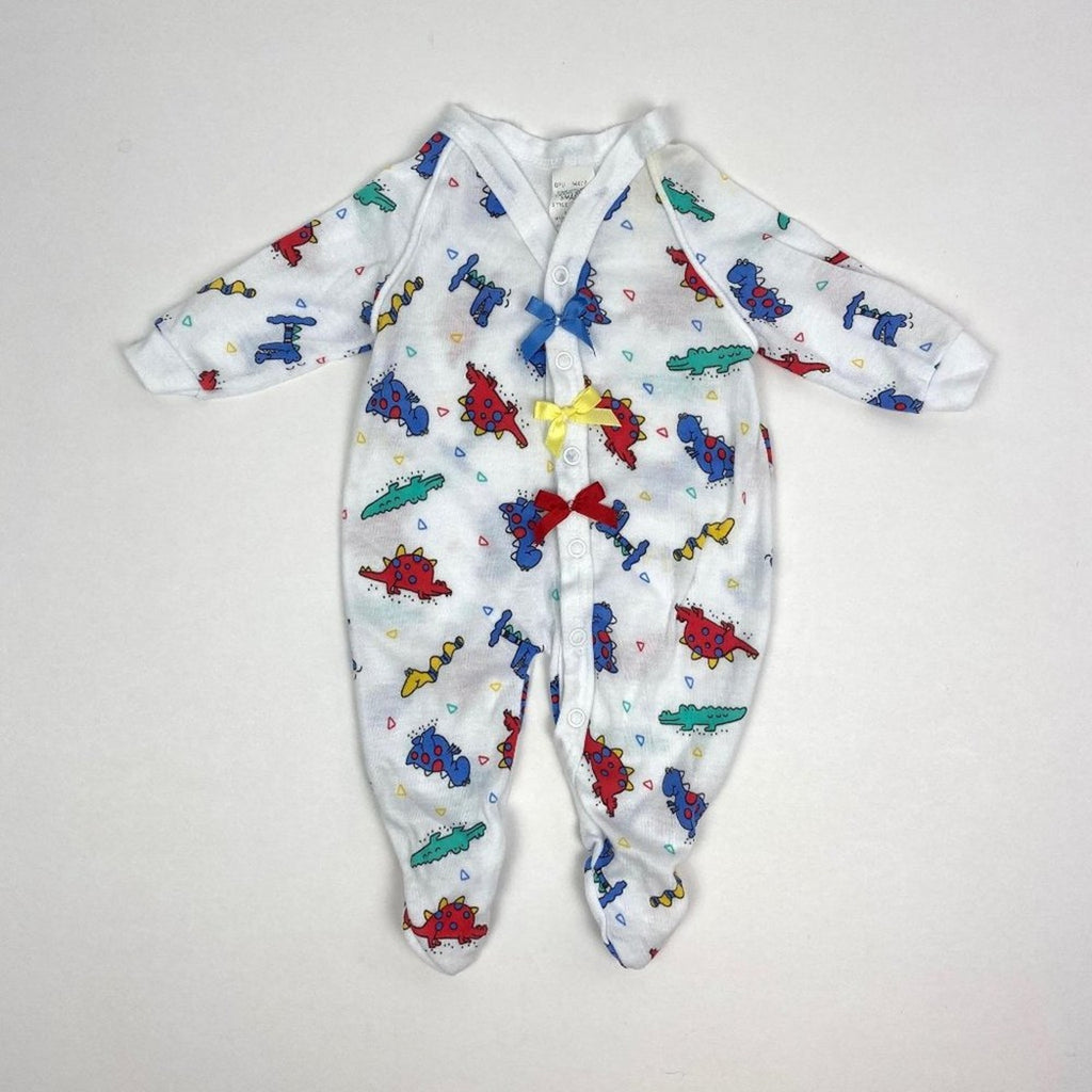 Vintage Teddy Bears Dinosaur Print Bow Footie Baby Girl Small