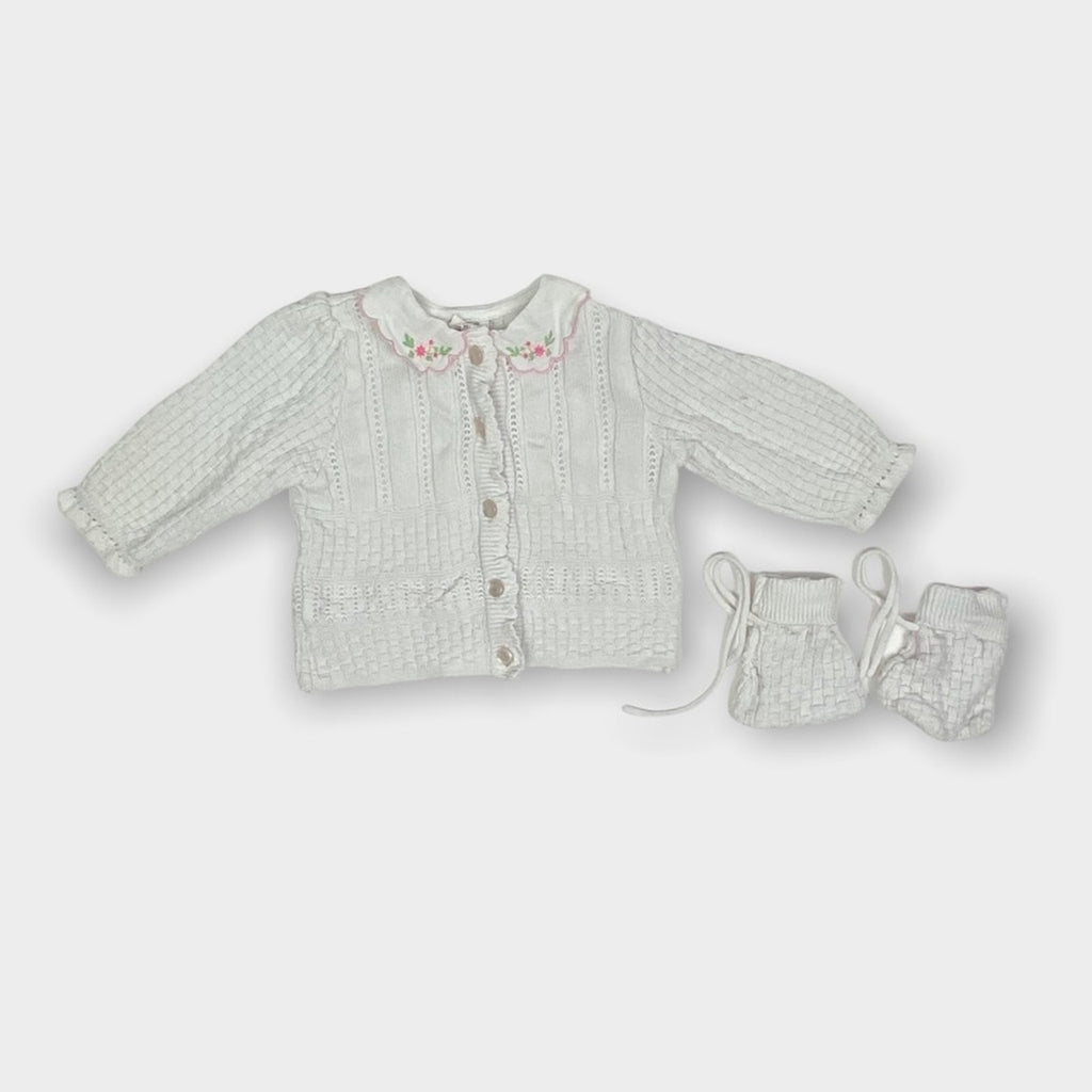 Vintage Girls White Cardigan Sweater 3-6 Months