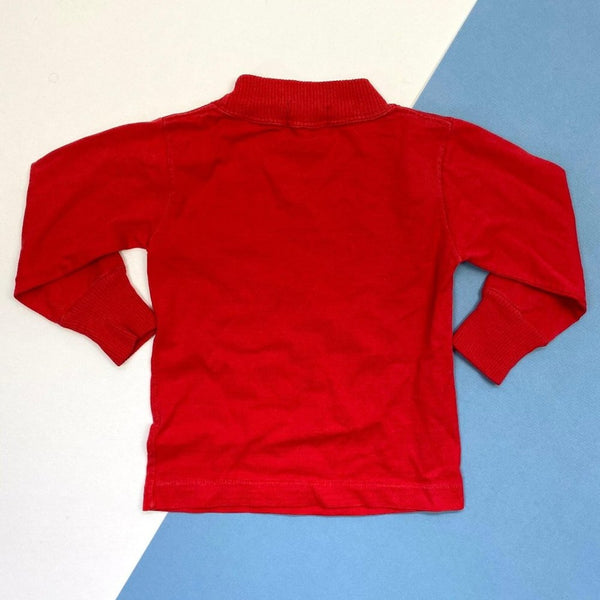Vintage Health-tex Long Sleeve Red Sledder Tee. Toddler boy size 3T. See photos for measurements. (Runs even smaller than usual as this is an older style.) Casual long-sleeve t-shirt for winter. Solid red with little sledder on chest. Needs a quick repair in the underarm (see photo), but otherwise great condition!