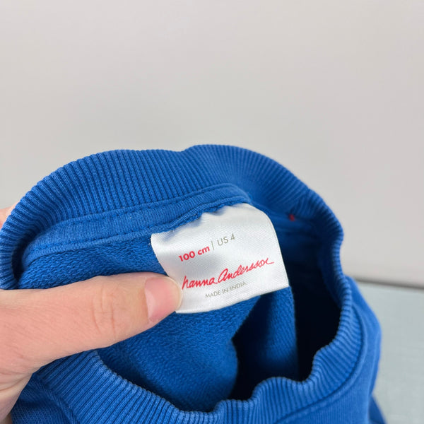 Hanna Andersson French Terry Lift the Flap Ice Cream Truck Applique Sweatshirt. Toddler boy or girl size 100 cm (US 4 years). Cozy crewneck pullover in bright blue with fun ice cream truck applique on the chest. Lift the flap to reveal sweet treats! Great condition with no flaws noted. Original retail $50.