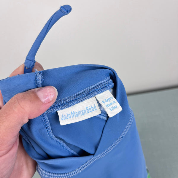 JoJo Maman Bebe Blue Alligator Rash Guard Swim Top. Toddler boy size 4-5 years. Zipper in the back for easy on/off. Great quality! My kiddo wore a decent amount but I don't see any wear. Fun design with stripes on the sleeves and an applique crocodile swimming on the front. UPF 50+ sun protection. Perfect for the pool or beach!