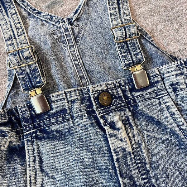 Vintage OshKosh B'gosh Acid Wash Suspender Overalls. Toddler boy or girl size 4T. USA made. Amazing acid wash denim. Classic vestbak style with unique suspender style straps in the front. So, so cute!