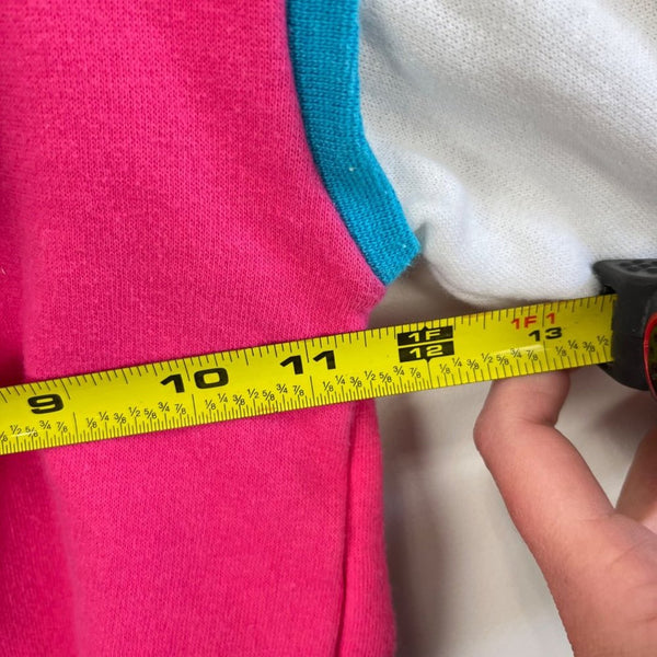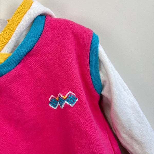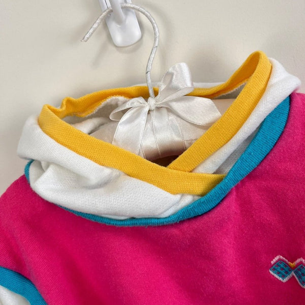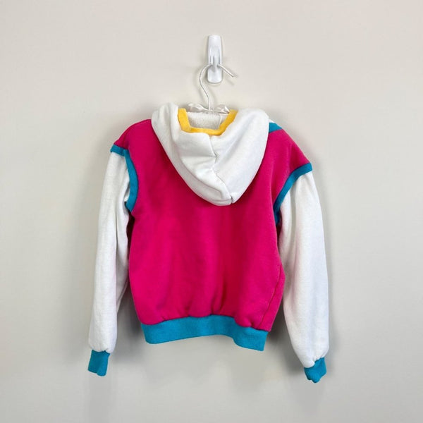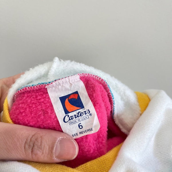 Vintage Carter's Hooded Sweatshirt. Little girls size 6, though looks like it would fit smaller. (See photos for measurements.) Cute and cozy pullover hoodie. Love the layered look with pink, blue, yellow, and white.
