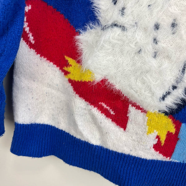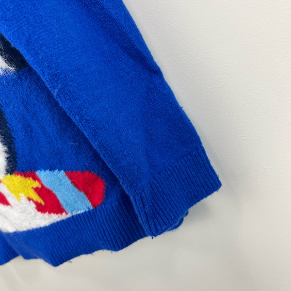Mini Boden Fuzzy Blue Snowboarding Penguin Sweater 5-6