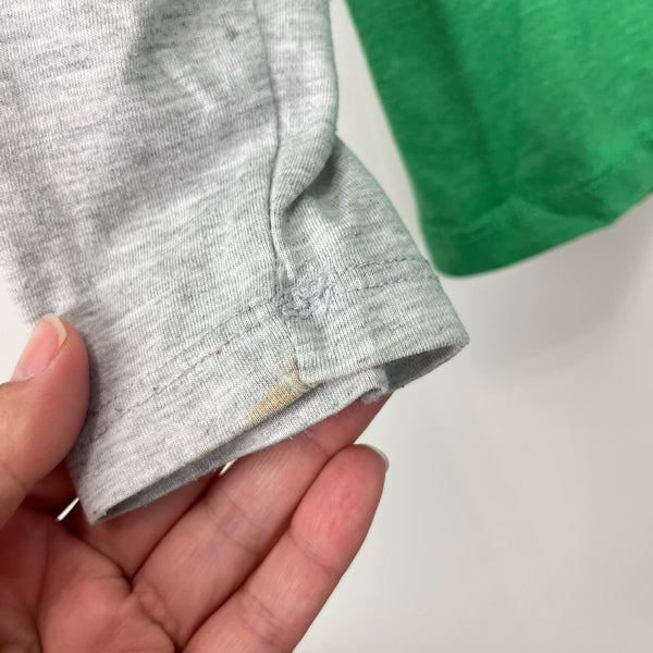 Peanuts Charlie Brown Christmas T-Shirt. Toddler boy or girl size 5T. Faux layered long sleeve green and gray top featuring Charlie Brown, Snoopy, and the gang! Some wear to the graphic and a light mark on the sleeve. Perfect for every day play this holiday season!