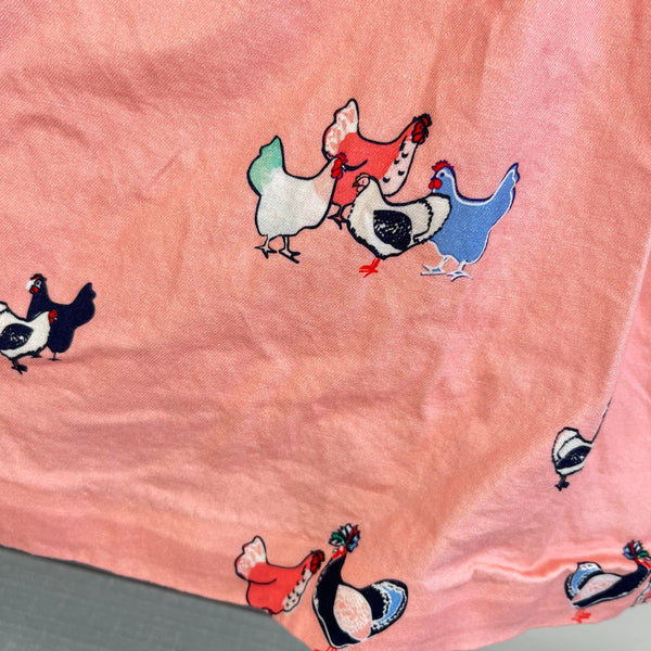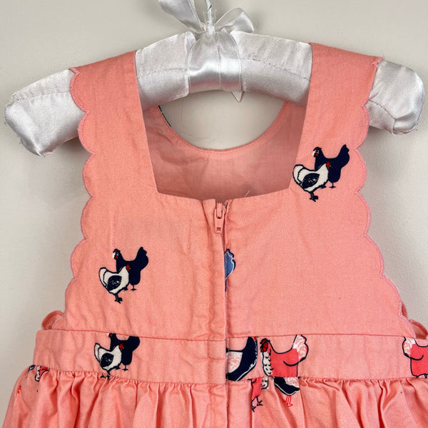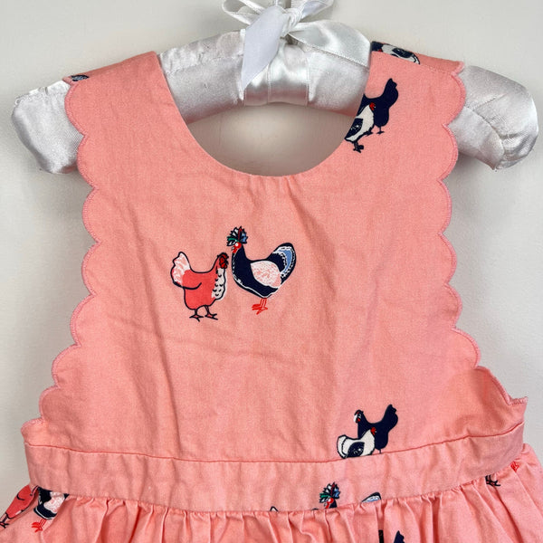Petit Peony Peach Pink Chicken Scallop Sun Dress. Toddler girl size 5T. Sleeveless pinafore style dress with fun chicken print. Fully lined with zipper in the back. NWT twin match available separately! Excellent condition.