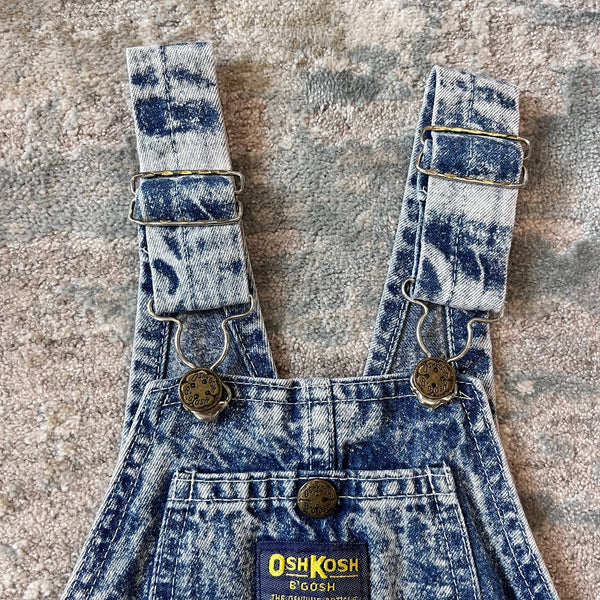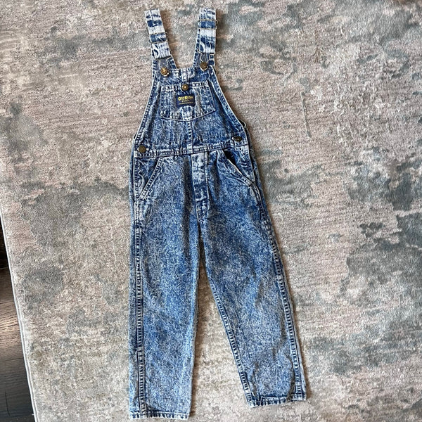 Vintage OshKosh Acid Wash Overalls. Unisex toddler boy or girl size 5T. Made in the USA. Classic vestbak style overalls with adjustable shoulder straps. AMAZING, extreme acid wash coloring. Great condition with no flaws to note.