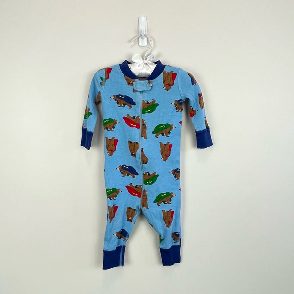 Hanna Andersson Blue Super Hero Bear Pajamas. Baby boy size 60 cm (US 6-9 months). Adorable one piece PJs with bears wearing capes! Great condition! Two available (listed separately); perfect for twins!