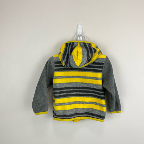 The North Face Boys Glacier Full Zip Hoodie. Baby boy size 6-12 months. Hooded, full zip fleece jacket. Mixed yellow and gray stripes. Light-weight, but cozy, durable, pill-resistant fleece. Has pockets! Perfect extra layer for fall or spring.