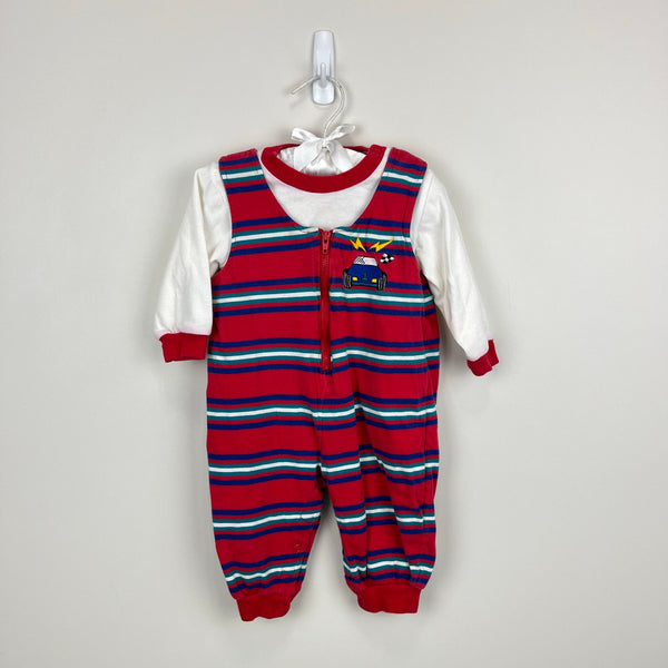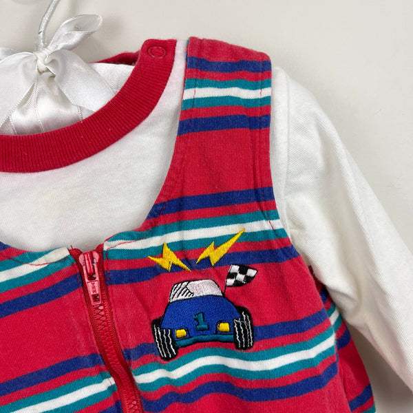 Vintage All Mine Red Striped Race Car Overalls Set 6-9 Months