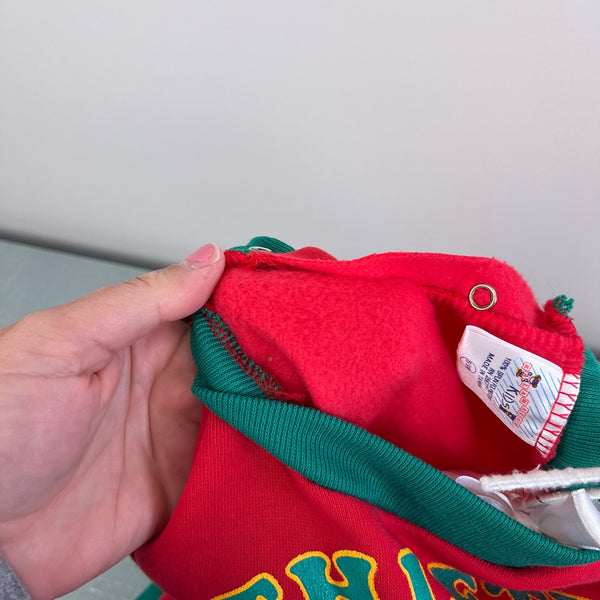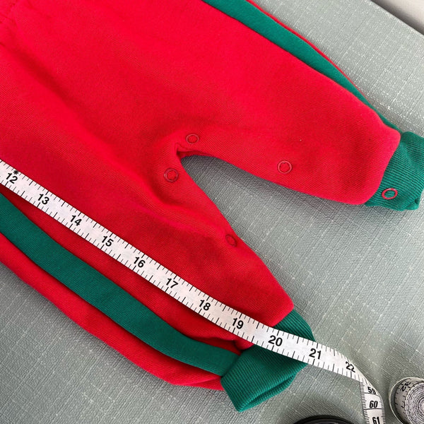 Vintage Kalamazoo Kids Athlete Coverall. Baby boy size 6-9 months. Dead stock, brand new with tag (NWT). Cozy sweatshirt material (sooo soft!) one piece romper outfit. Long sleeve top and pants bottom. Red with green. Yellow sneakers and blue star on the chest. Snaps in the back and along the legs for easy on/off.
