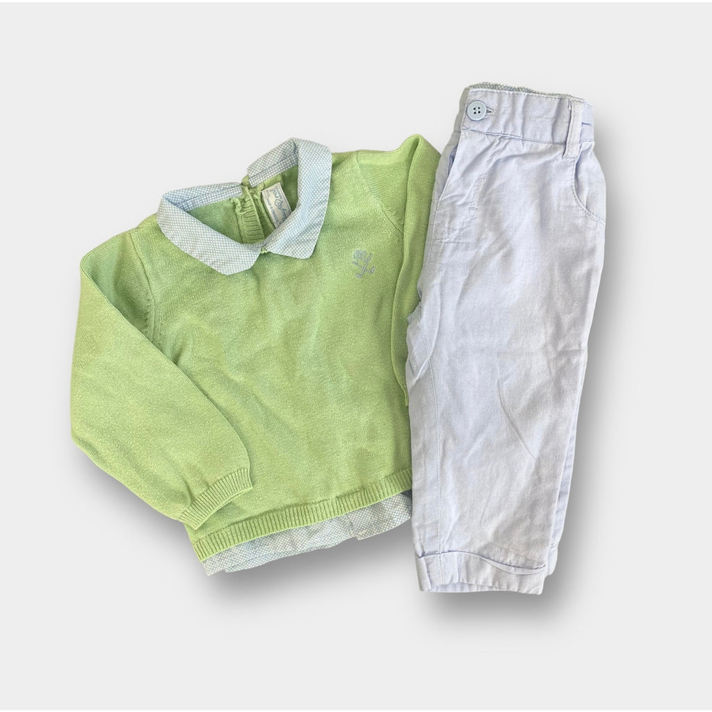 Mayoral Baby Blue Green Sweater Set 6-9 Months