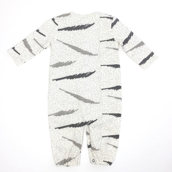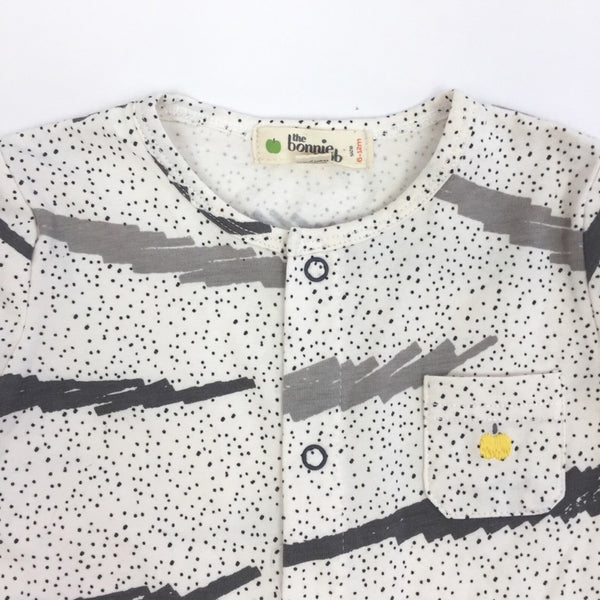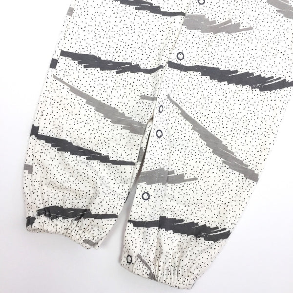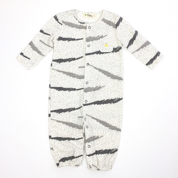 The Bonnie Mob Organic Cotton Converter Gown. Baby boy or girl size 6-12 Mmnths. Gender neutral snap up one piece outfit converts to sleep gown. Mixed light and dark gray geometric and dot print. Like new!