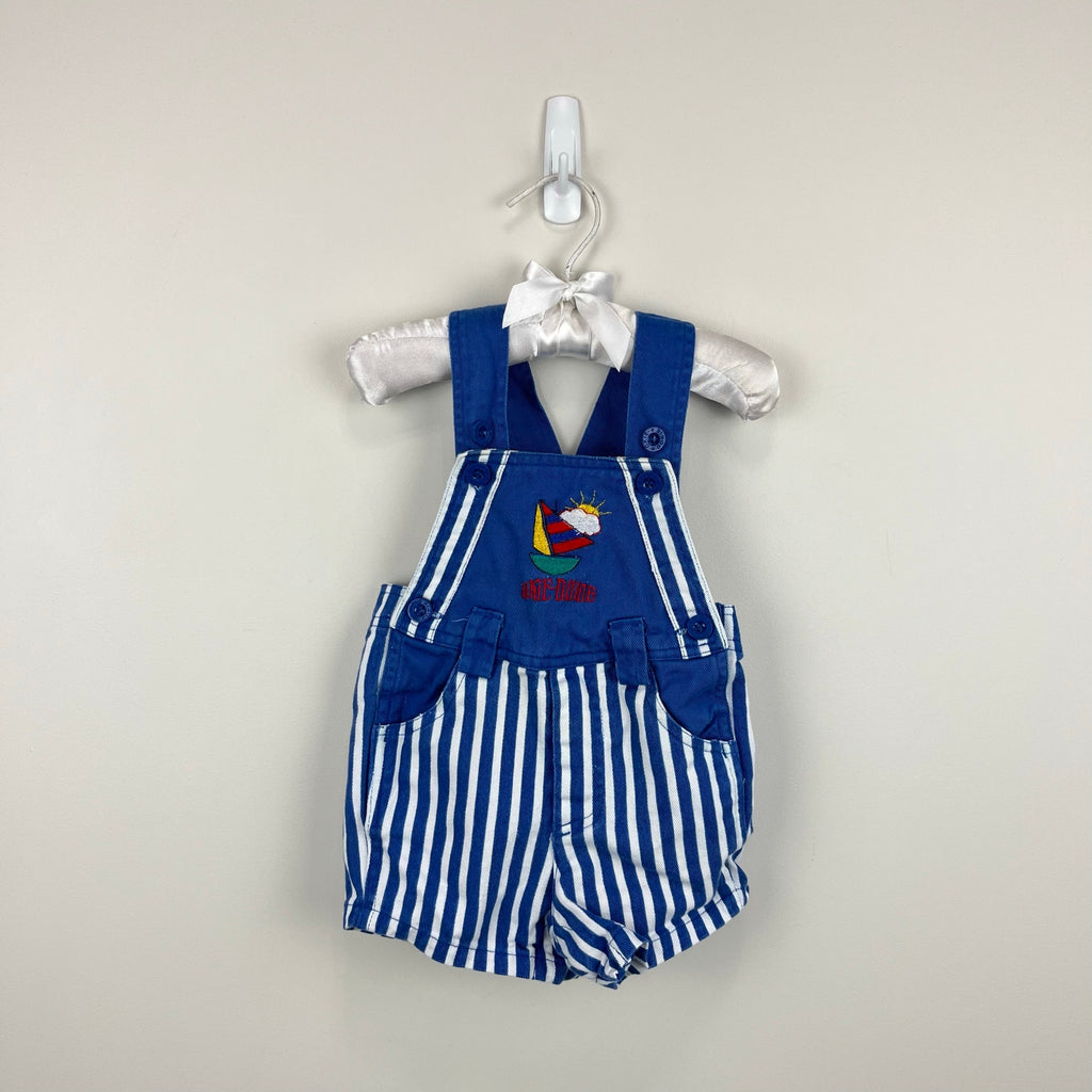 Vintage Okie Dokie Blue Striped Shortall Romper 12 Months