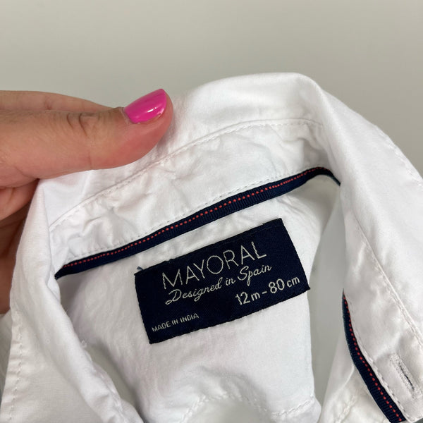 Mayoral Short Sleeve White Button Up Shirt 80 cm 12 Months