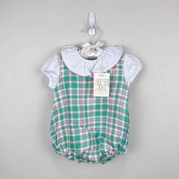 The Beaufort Bonnet Company Brooksy Bubble Set Putney Plaid with Worth Avenue White & Palm Beach Pink Picot. Baby girl size 6-12 months. Brand new with tag, in bag (NWT) and would make a great gift! Match for big sister (18-24 months) available separately. (Also have a size 8 skirt that can be listed upon request.) Adorable dressy two piece romper outfit set Super soft pink, green, and white plaid bubble and matching ruffle collar white short sleeve top. Elasticized leg openings, snaps at the bottom, and buttons at the shoulders.