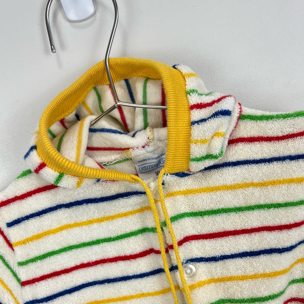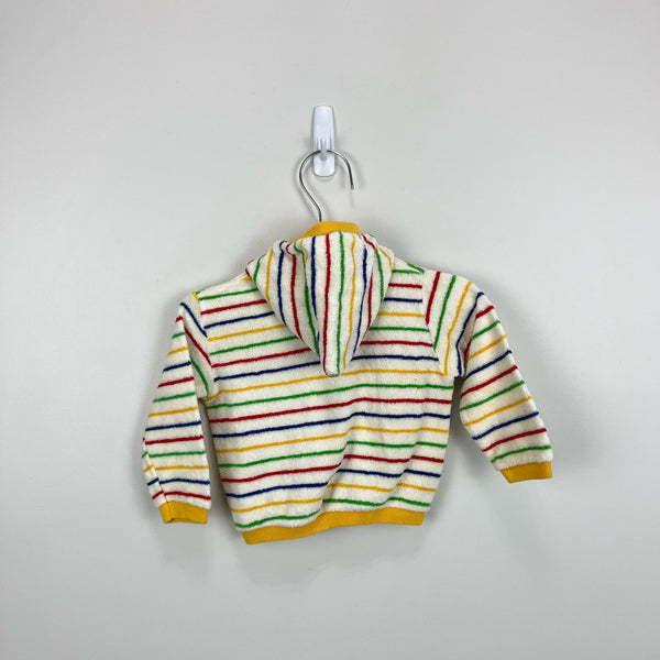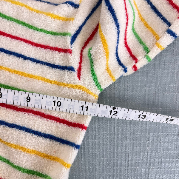 Vintage Bloomingdale's Rainbow Stripe Terry Sweatshirt. Tagged XL; maybe 12-18 months? See photos for measurements. Adorable hooded cardigan with button front and colorful stripes.