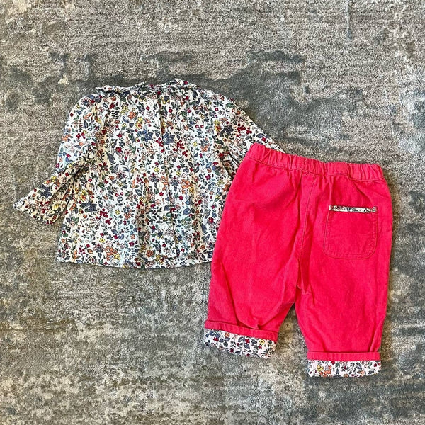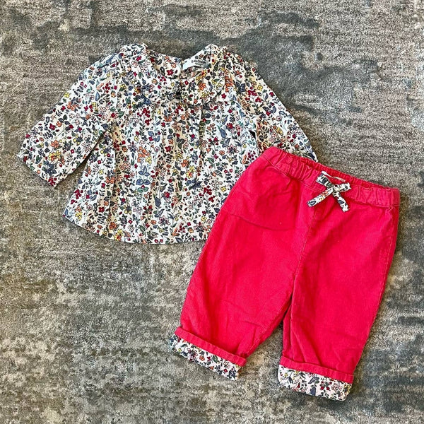 Mini Boden Cozy Pink Corduroy Pants & Floral Blouse 0-3 Months