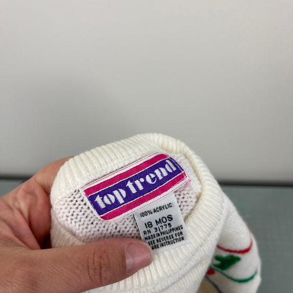 Vintage Top Trend Turtle Number Sweater. Baby toddler girl or boy size 18 months. Knit crewneck pullover with primary colored stripes and turtles. Do the math and one green turtle, two red turtles, and three yellow turtles equals 6! Faint marks near neck (see photo; untreated). So cute for preschool photos!