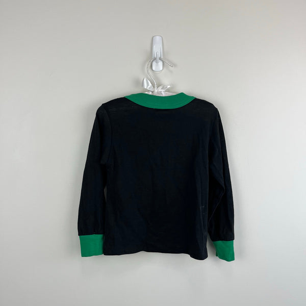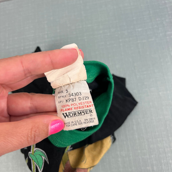 Vintage 90s Wormster The Lion King Long Sleeve Black Simba Tee Shirt. Toddler boy or girl size 5T. USA made. Long sleeve black pajama top with green cuffs and Disney's grown up Simba lounging in the jungle. Light wear.